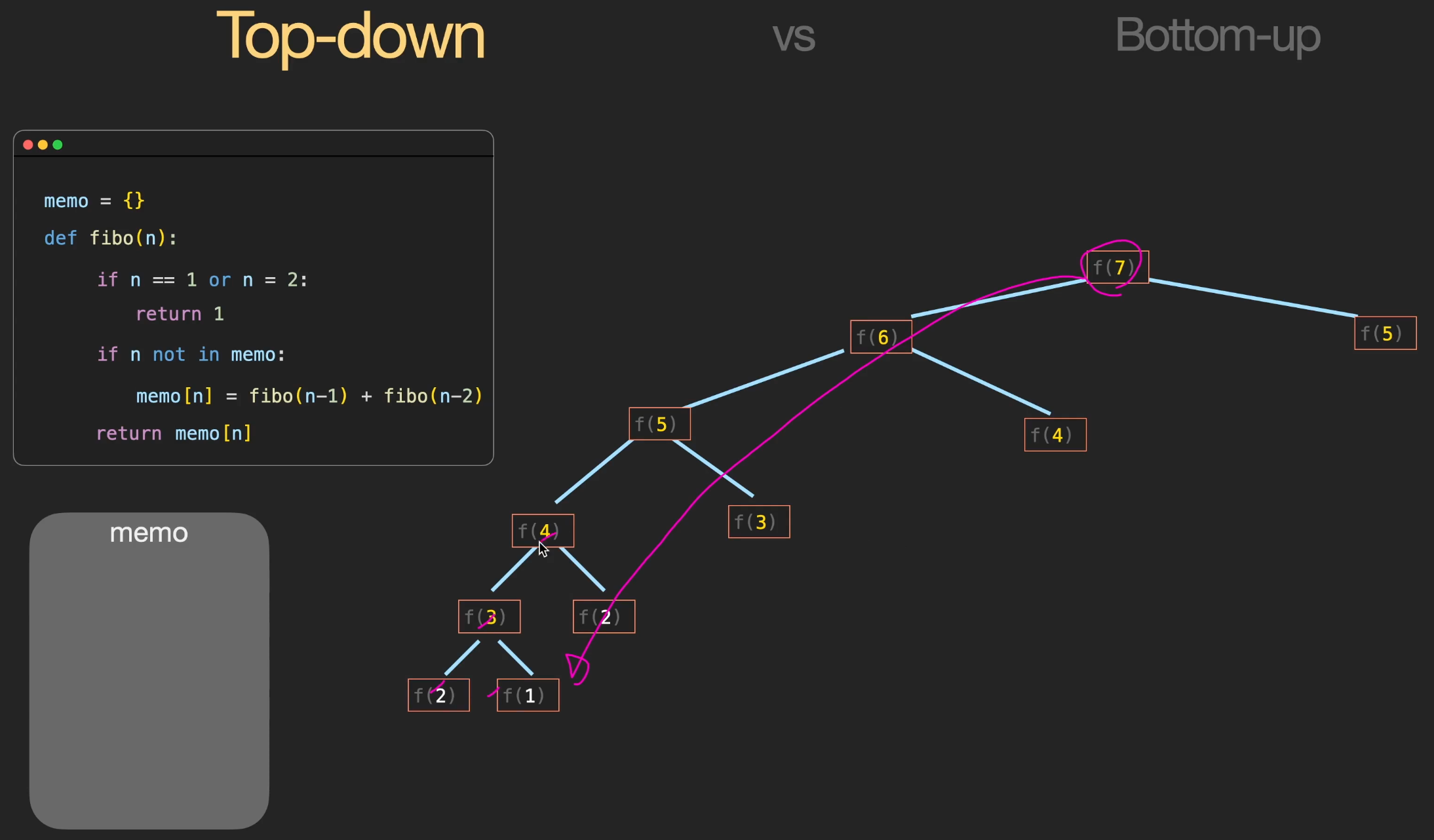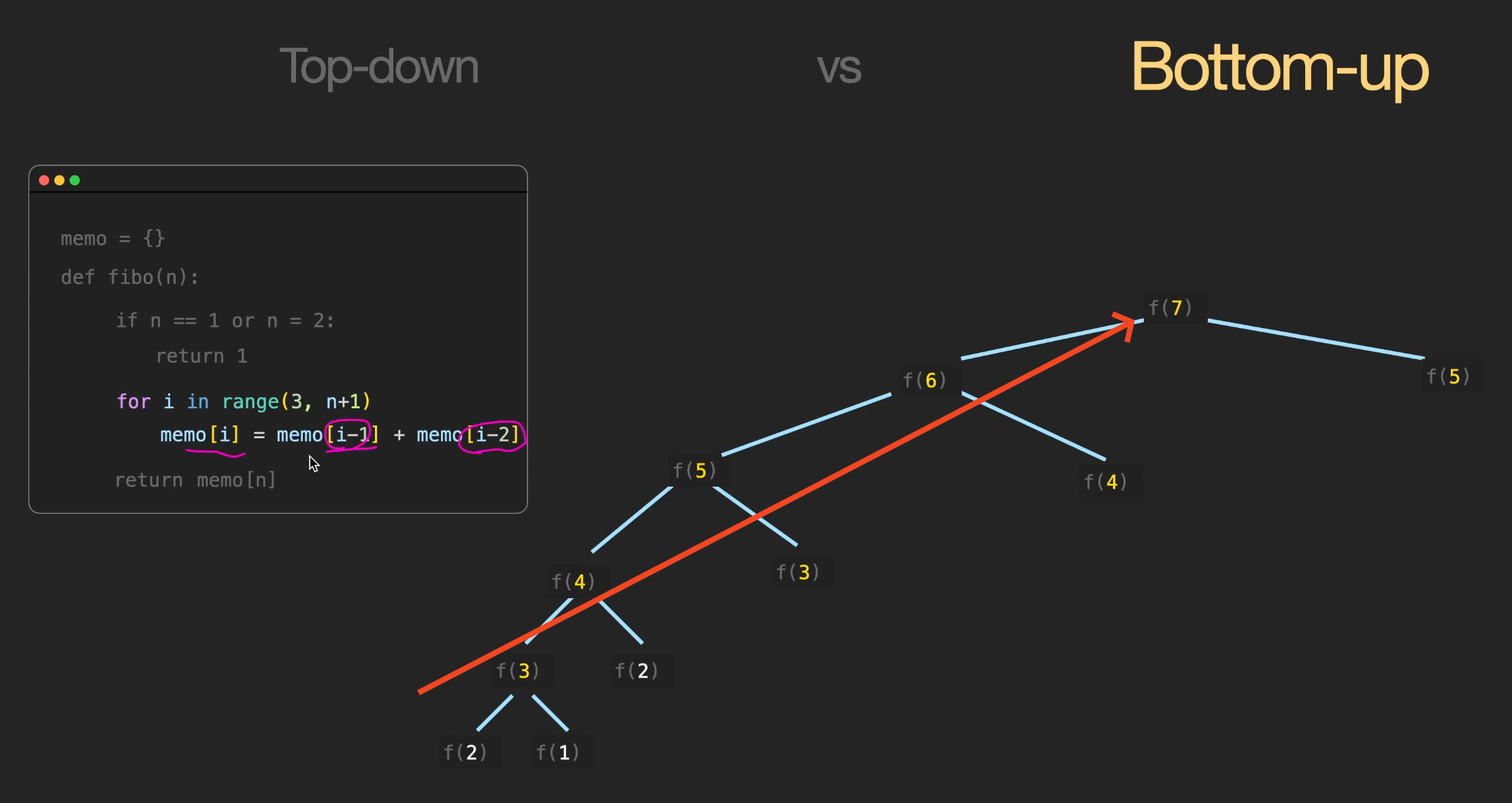 memory[n] = fibo_dp(n-1) + fibo_dp(n-2)