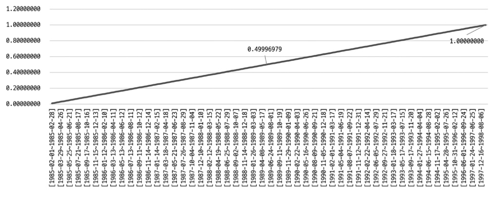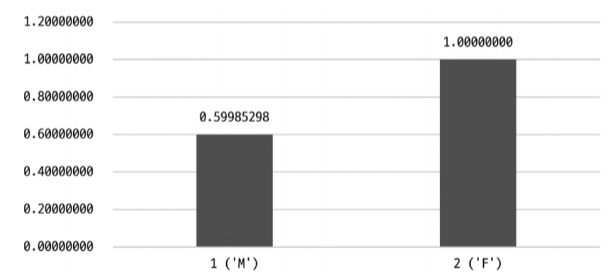 - 👆 M 값과 F 값에 대한 분포율을 담고 있으며 누적 값을 가지고 있기 때문에 F 값은 1 - M 값이 됨
