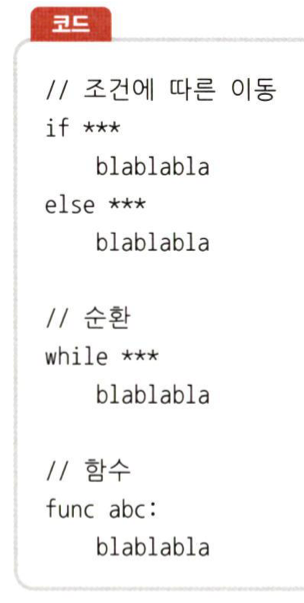 여러가지 명령어에 문(statement)라고 명칭하고 조건에 따라 다른 명령어를 실행하는 규칙도 정의한다.
