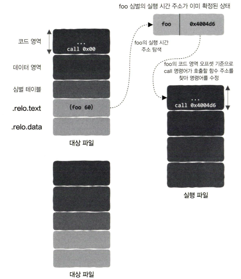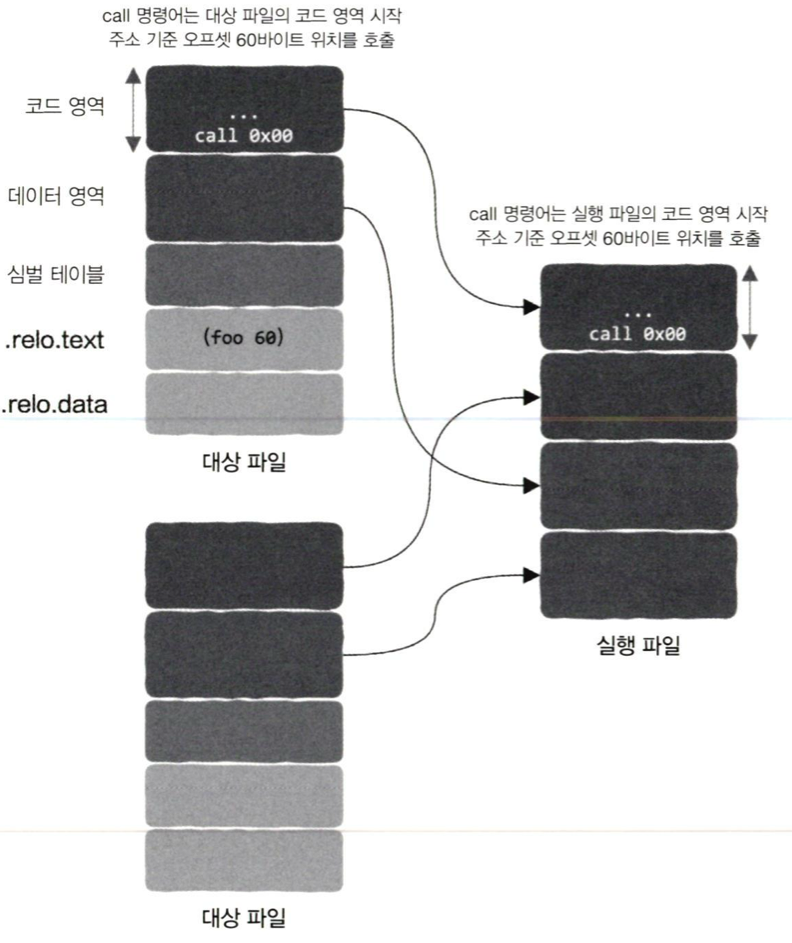 - 컴파일러는 .relo.text에는 해당 명령어를 저장하고 .relo.data에 해당 명령어와 관련된 데이터를 저장한다.