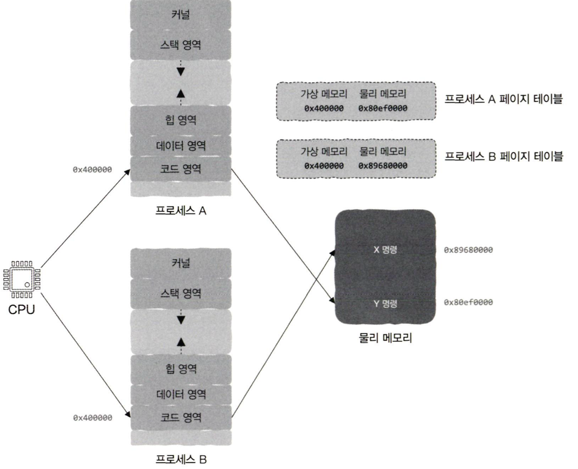 - ✨모든 프로세스는 자신만의 페이지 테이블을 가지고 있으며, 같은 가상 메모리 주소라도 페이지 테이블을 확인하며 서로 다른 물리 메모리 주소를 획득한다.✨