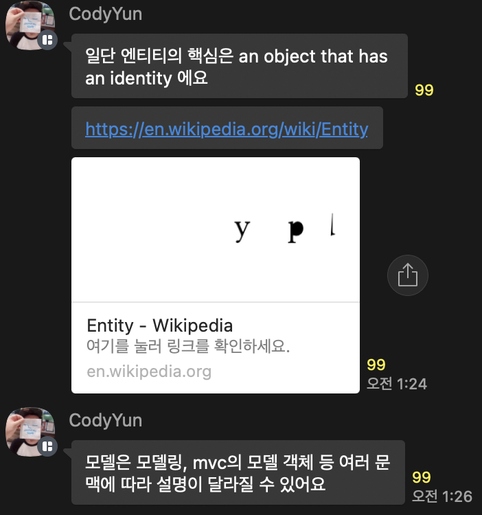 나한텐 너무 어려운 개념이다. 일단 엔티티는 비즈니스 로직에서의 모델이라고 이해하고 있기로 했다.