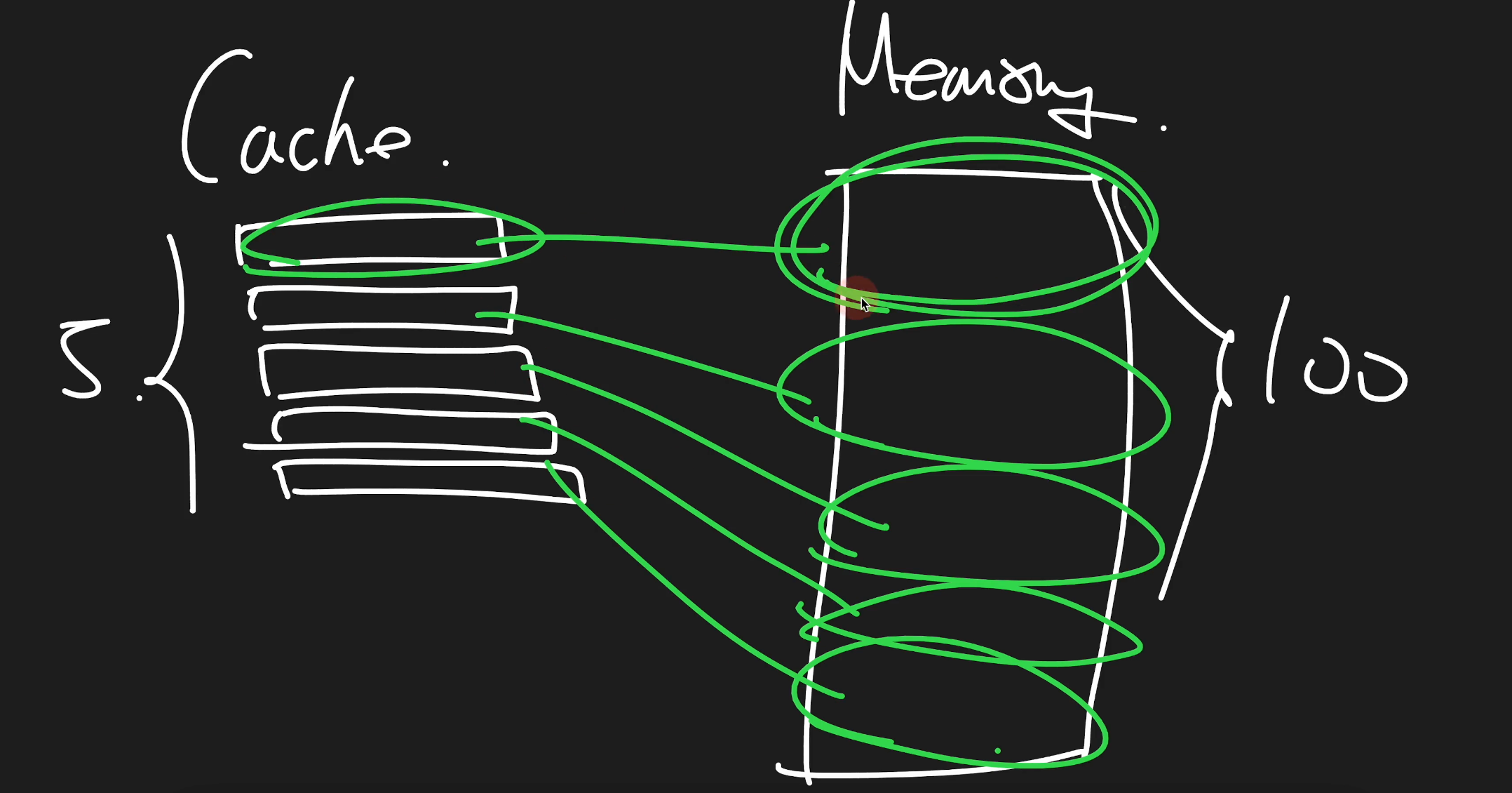 - 주 메모리의 크기가 더 작기 때문에 캐시의 라인의 수 만큼 주 메모리를 블록으로 나누어 사용한다