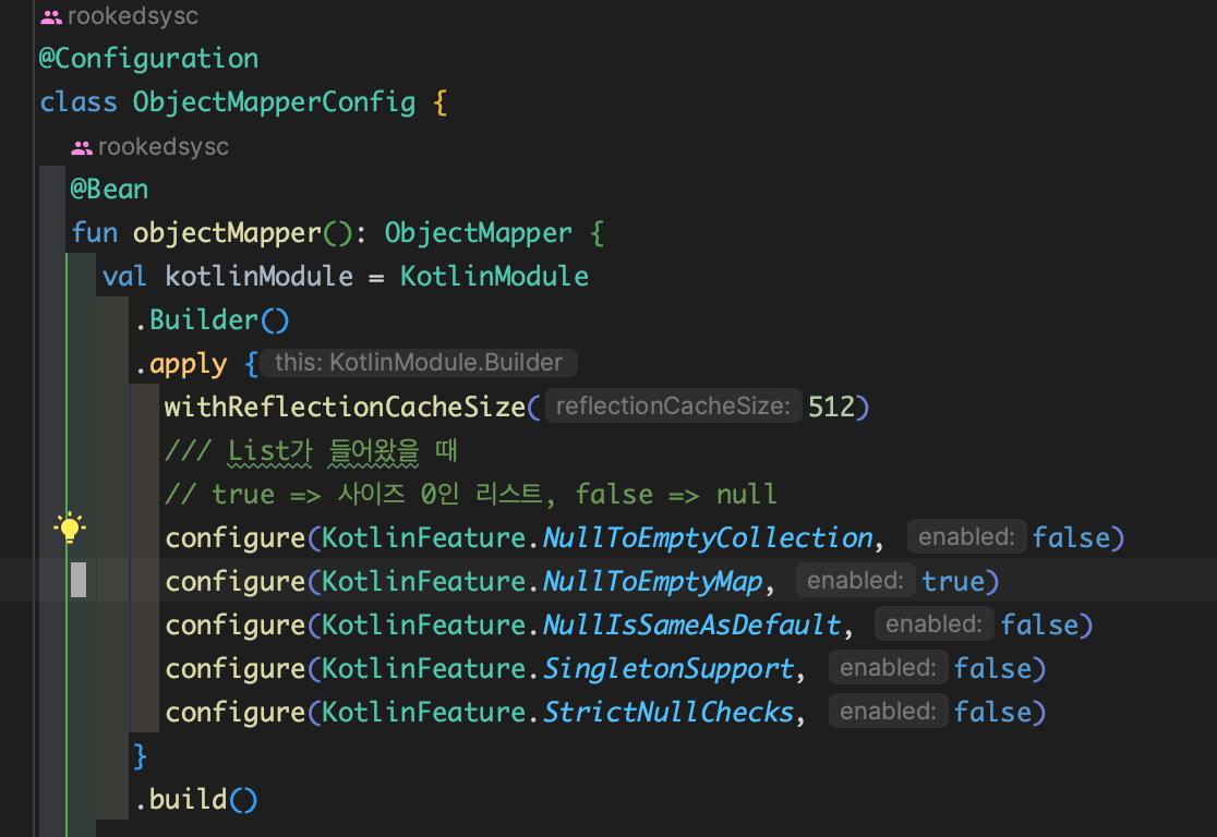 builder 패턴 사용시 자동으로 개행해주는 설정