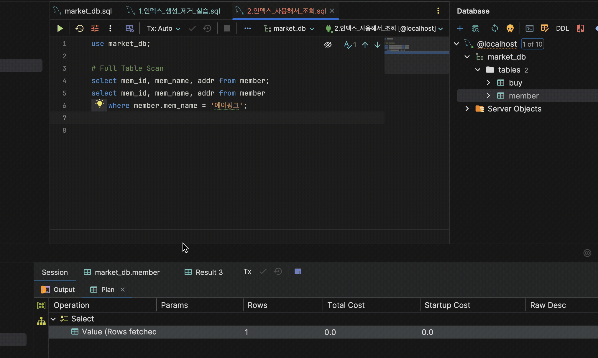 실행할 쿼리 오른쪽 마우스 클릭 > Explain Plan