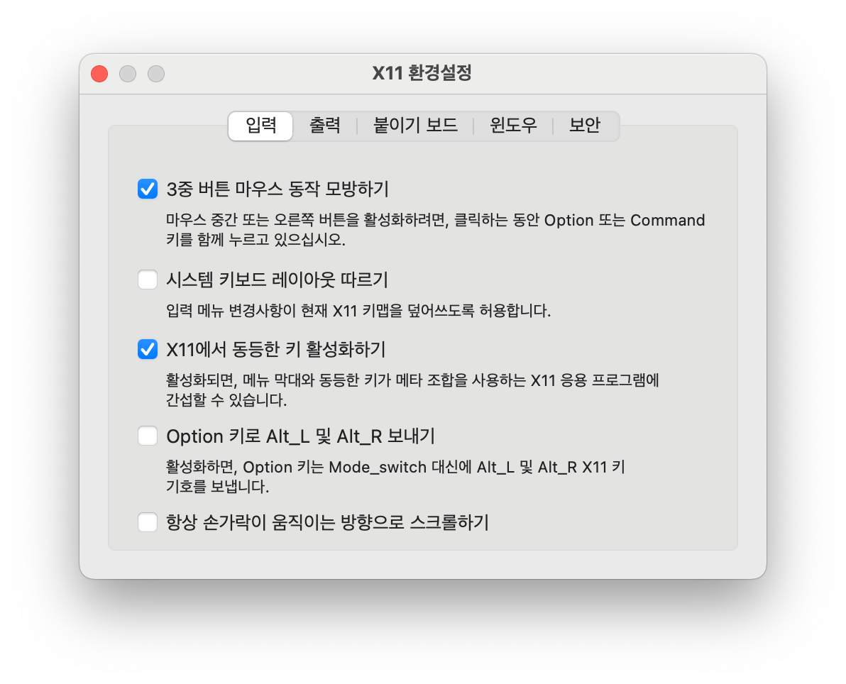 brew install --cask xquartz- XQuartz 3중 마우스 동작 모방하기 설정 On