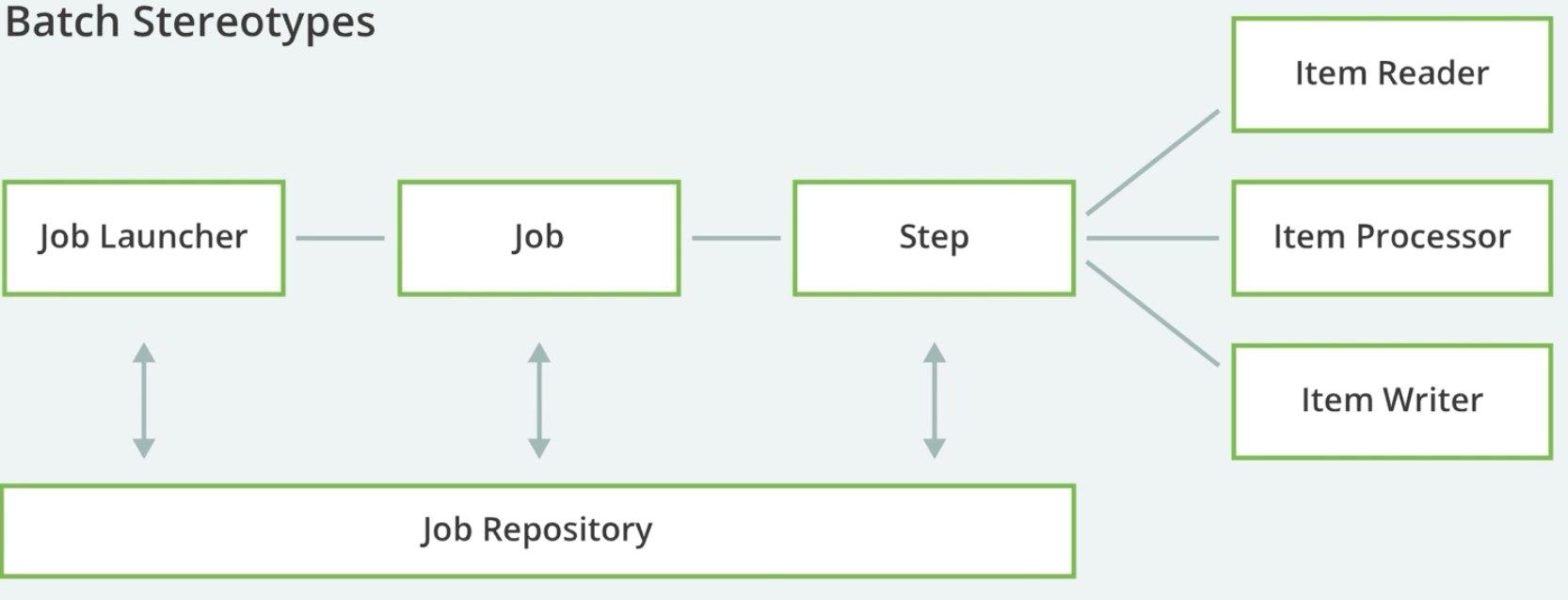 SpringSpring BootSpring Batch스프링 배치 배치 프로그램이란? 데이터 처리에서 즉시성을 필요로 하지 않을 경우, 일정량 또는 일정 기간 데이터를 수집한 후 일괄 처리하는 방식. 정산 시스템 데이터 마이그레이션 약관 변경 메일 통계 게임 랭킹 쇼핑몰 배송요청 MonitoringSpring 관점 지향 프로그래밍