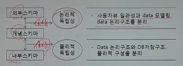- Data 논리구조와 DB 저장구조, 물리적 구성을 분리