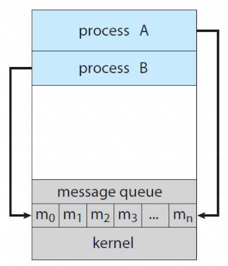 Message Passing 방식에서는 운영체제가 메시지를 직접 관리하며, 메시지가 커널을 거쳐 전달되므로 Shared Memory보다 보안성이 높다. 그러나 속도는 Shared Memory보다 느릴 수 있다.
