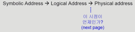 사용자 프로그램은 logical address만을 다룬다. 실제 physical address는 볼 수 없으며 알 필요가 없다.